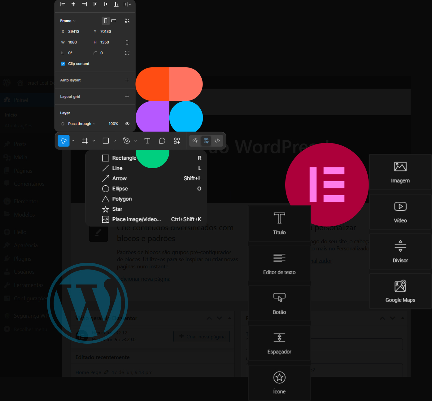 EU utilizo o Figma, WordPress e Elementor de forma estratégica para garantir que seu site seja atrativo, otimizado e seguro.